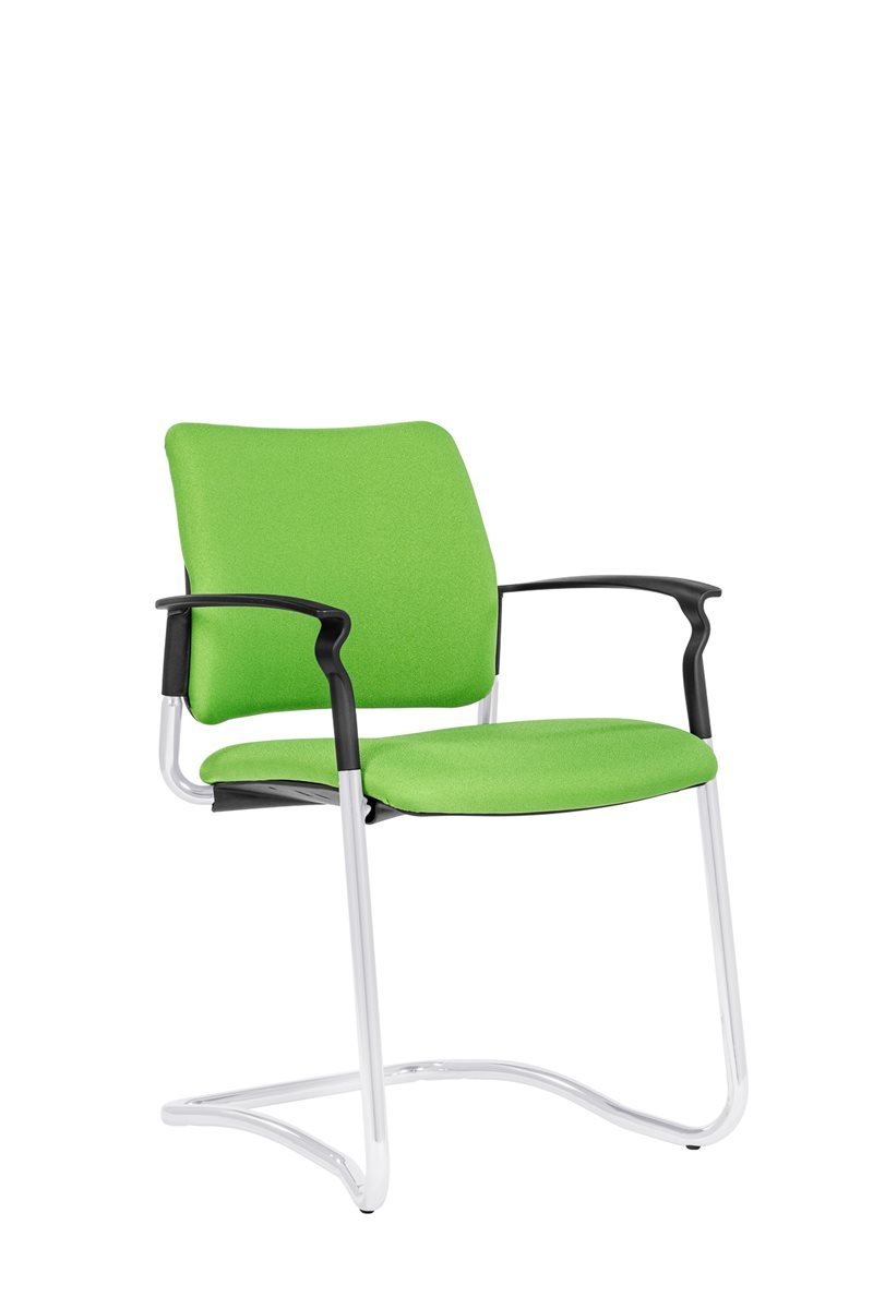 Konferenční židle s područkami, čalouněný sedák a opěrák, ocelový chromovaný rám ližinového typu. Široký výběr barev. celý popis