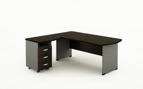 Rohové pracovní místo z nábytkové řady Berlin s originálním designem pro reprezentativní vybavení kanceláře.  celý popis