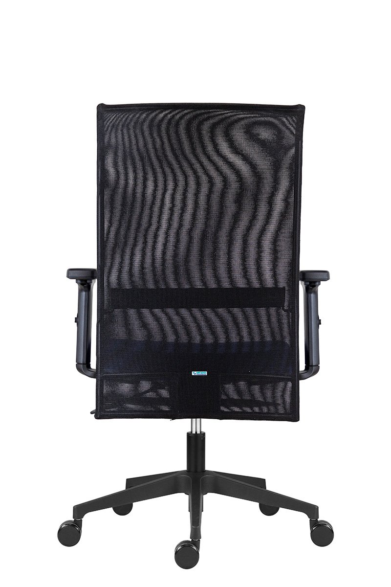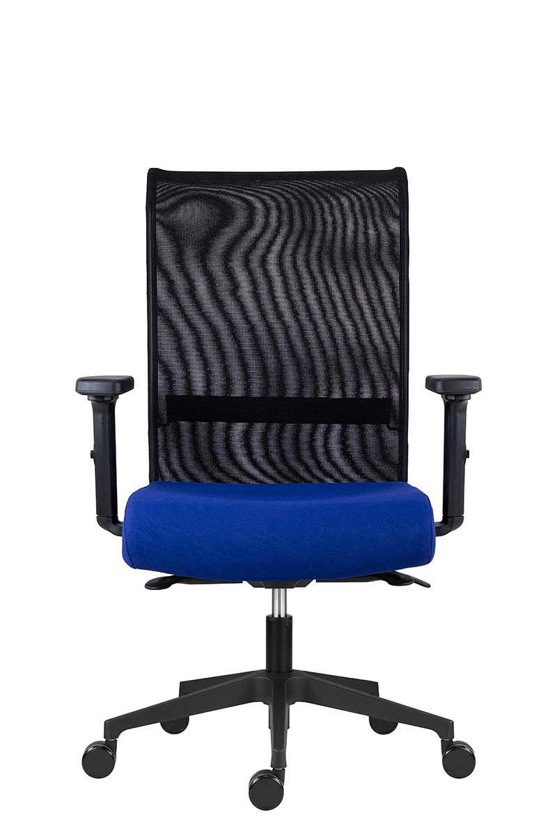 Moderní kancelářská židle s prošívaným čalouněným sedákem, opěrákem ze síťoviny, volitelným podhlavníkem a područkami.