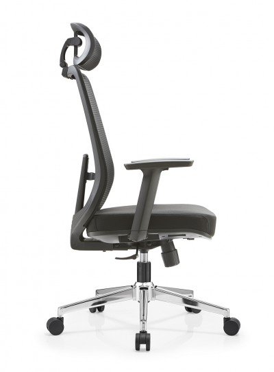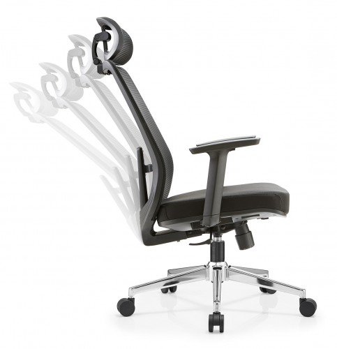 Ergonomická kancelářská židle s vyšším opěradlem a podhlavníkem.